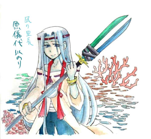 凪の里は主に海生生物のセンカの里です。魚介類。淡水と海水で里を分けるとややこしい事になりそうなので、位置としては河口付近で淡海水両方が棲める感じ。『地の波』と『天の波』を読み統治を行う里なので、長はその読みを行う『波導師』が務めます。以のりは里で最も力のある波導師。