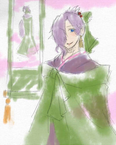 大陸の三大美人画の一つとされる『紫香裏姿図』と呼ばれる美人画の画霊がその正体。元々は店の商品の一つだったが、(絵の中の)紫に大層惚れた店主が店に来たときには無くなっていた紫の絵の箱を探す旅に出てしまったため、代わりに店番をするようになった。
