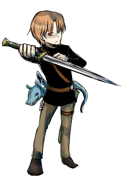 紅い薬にならずに成長すればこうなります、という姿です。母譲りの砂色の髪と夜色の目の子。恐らく僧侶。