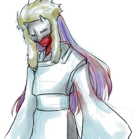 刀身が赤いからそのまま肌も赤くなっております。普段は仮面つき。