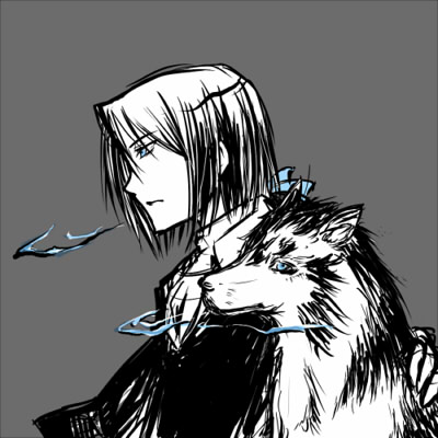 鬼火が宿った目のイメージはシベリアンハスキーです。瞳孔がはっきりしてる感じ。