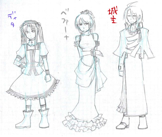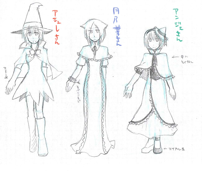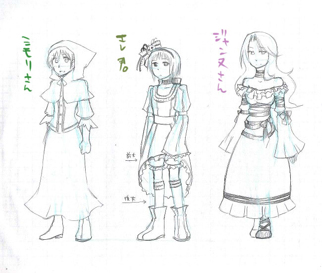 ランプとニコは以前にカラーで出したので割愛しますが、他の方々の衣装は以下の通りです。