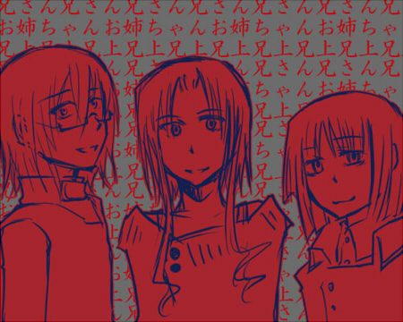 なんで弟キャラを両脇に。ディタは一応姉妹で姉と義兄が居るんで妹です。姉出てませんが。