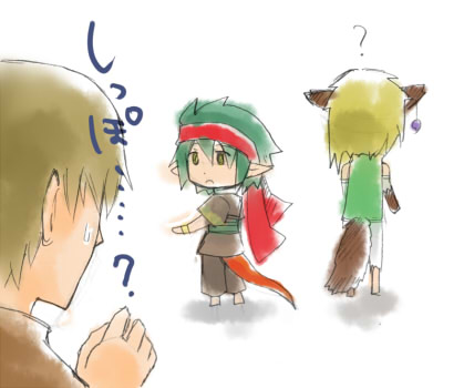 実際は自分のハチマキしっぽにするんでしょうけど、せっかく多種族世界ですから。