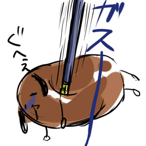 カンさんがサーカス団員のスカートの中を覗いたので団長が怒ってます。