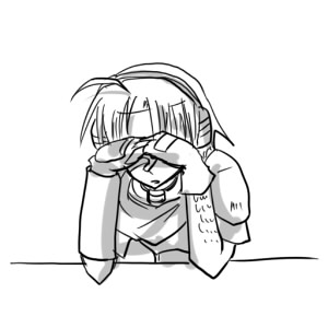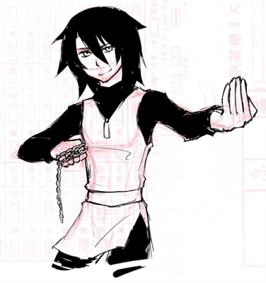 3枚目は挑発してるっぽいテオフィルです。…たぶん。目つきが若干メリッサっぽい気がしなくもありません。手に巻いているのは鎖です。喧嘩武器。