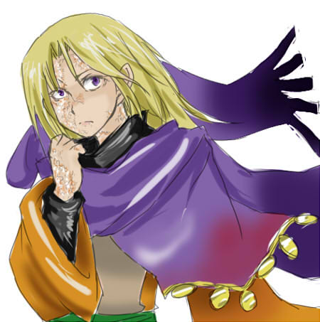 顔のは火傷跡です。どう頑張って治してもこれが限界という重傷でした。右の眉と髪の毛の一部も焼けて生えてません。隠すためのターバンとマスク。服の下もだいたい半分以上はこんな感じです。
