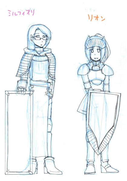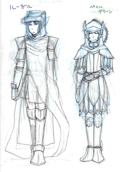 授業の片手間に落書いてみた鎧たち。ヒュー国モブ騎士予定。