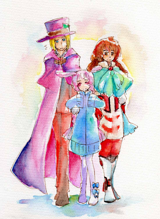 最初にこのフラグを聞いたときからこんな絵面を想像しておりました。今は伯爵が戸惑い状態ですが、多分仲良くなっても手を繋ぐときの姿は間にアリスちゃんが居ると思います。