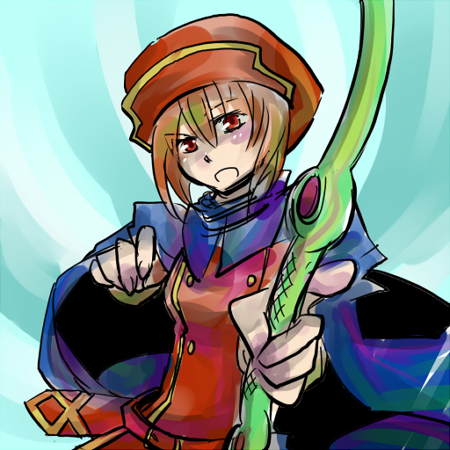 光の矢が番えられている加工版があるのですが、それだと顔以外大半が隠れてしまっているので加工前を一応出しました。マントの模様がっつり忘れてるよ…;
