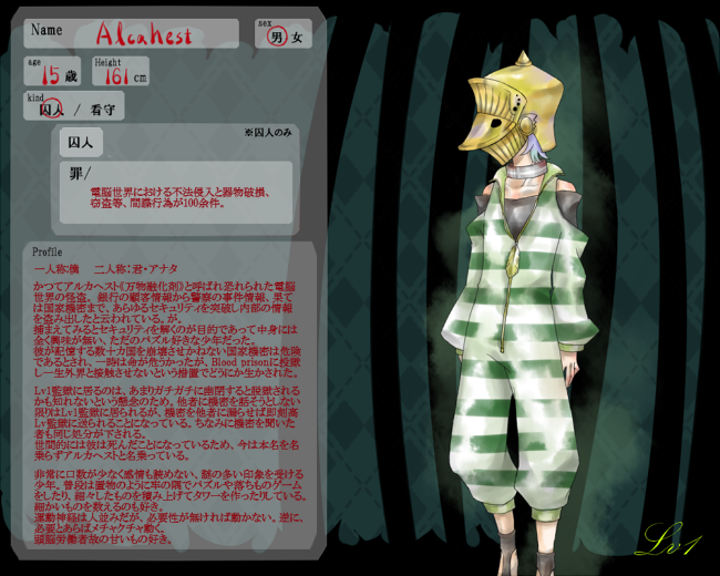 アルカが軽犯罪で動き回るのに対し、こちらは模範囚としてたとえ脱獄イベントあっても看守の手先になりそうなキャラにしました。