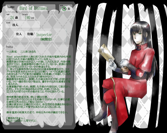 監獄役人・ヘルメスの鳥。役職は検閲官。