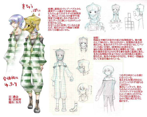 頭の良い少年犯罪者、というだけだと個性が薄いということで見た目的インパクトを狙って鉄仮面被せました。