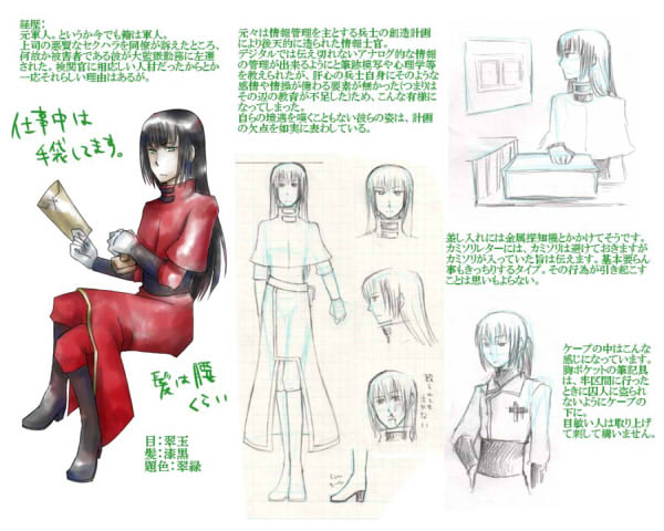 二人目は致命的な重犯罪にはならない程度で、かつ監獄にはつきものの脱獄イベントに活用できそうなキャラというコンセプトのもと作りました。電脳犯罪というのが近未来設定を意識してたりします。