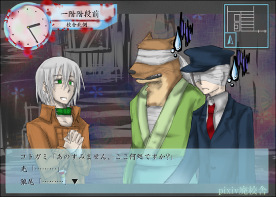 これ描いている最中は学校の見取り図が無かったので背景とマップが適当です。