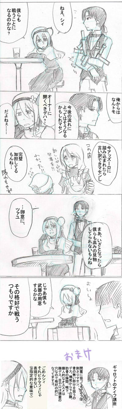 反転駆使して描いてたせいで、ギャロットのベストの袷が逆になってるという致命的ミス。