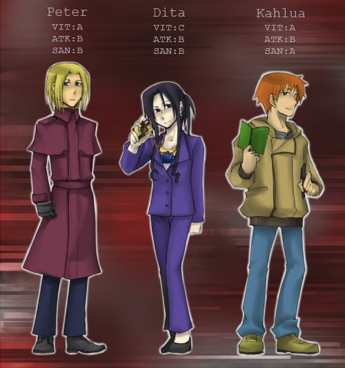 ・高いATK値とSAN値、そして刃物系武器最高の攻撃力と間合いを持つ刀を所持する攻撃型のキャラクター。VIT値は平均だが無茶をしすぎない限りは気にならない。無限弾数アイテムと同義の存在なので、素直に敵に立ち向かっていこう。
