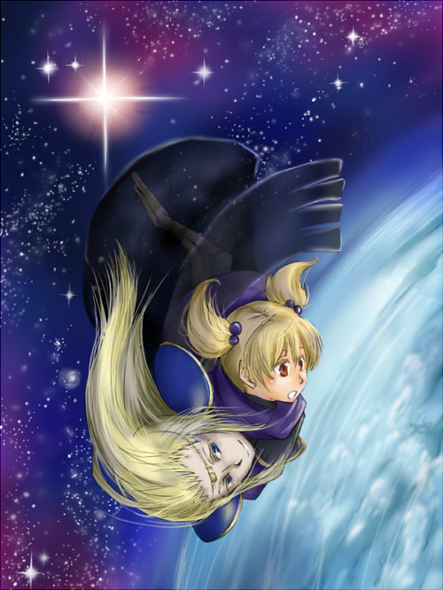 そんなことを考えながら描いてみた絵。下書き時点で彼と召喚契約結ぶメリットの無さにやっちまった感がにじみ出ていましたが、深く考えないことにしました。召喚主に自らの世界を見せてみる星さん。…人攫いじゃないんだからっ! 景蝕はこのあとジルさんにぶっころがされそう。
